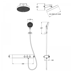 商品名称:三功能按键旋钮式入墙式平台雨林(530mm不锈钢平台、可调节水量、手持带喷枪功能)